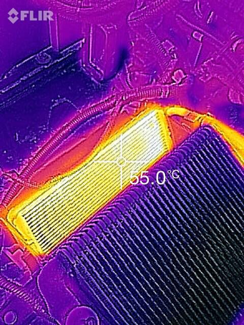 ヒーターコアをサーモグラフィーで撮影します。暖まって
